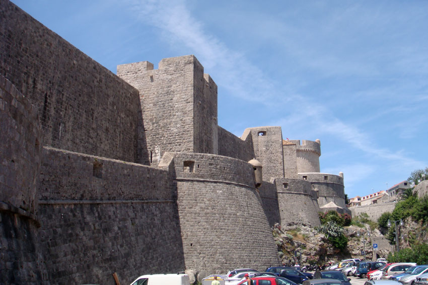 | The old City of DUBROVNIK is a fortified peninsula rounded by high walls.