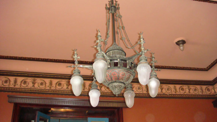 Exemple de la délicate décoration de l'Institut: lustres dans les salons. |