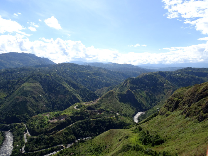 Le pays a beaucoup d'eau. Deux océans et de nombreuses rivières. Ce fleuve, le plus long, s'appelle Rio MAGDALENA. Nous le suivrons en bus sur une route très, très, très longue, sinueuse, parfois juste une mauvaise piste, à travers les montagnes et de très beaux paysages verdoyants. |