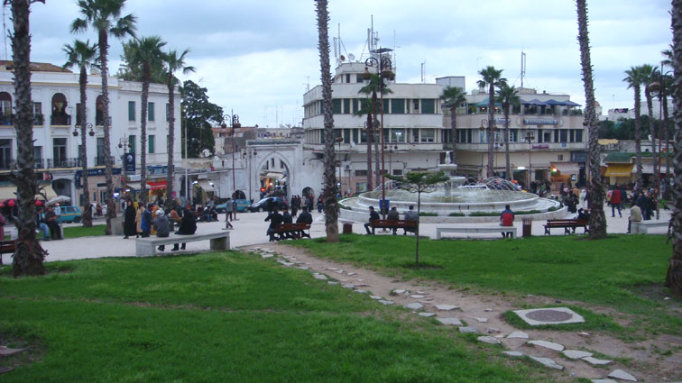 "Place du Grand Socco", située entre la vieille ville (que l'on voit au fond) et la ville moderne (photo suivante). |